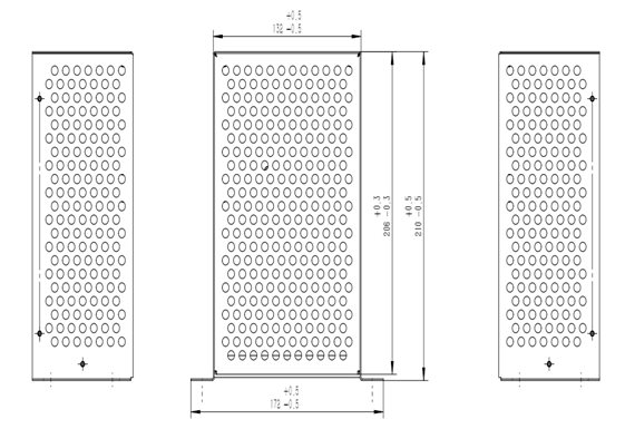 3. 主要参数 (1) 电源输入 输入电压 185-265V/50-60Hz 交流电; 输入电流 0-6.3A; 输入功率:0-1.38kW。 (2) 电源输出 阴极高压:4200Vdc; 阳极电流(Io):0-310mA; 输出功率:0-1300W。灯丝电压(Vf):3.3V; 灯丝电流(If):6-10A。 (3)效率: 3 90% (4) 功率控制方式:电压/电流 (5) 冷却方式:强制风冷 (6)工作温度:-30-+55℃ (7)接地方式:外壳地+导线连接; (8)尺寸/重量:250(L)×170 (W)×105 (H)mm/1kg (9)安装形式:机箱下边配有安装底板,底板与固定平面以四颗 M4 螺钉连接,底板螺丝过孔位于正方形的四个角,正方形边长 100mm。 (10) 灯丝线:硅胶高压线,耐压等级 50kV,标配长度 1m。