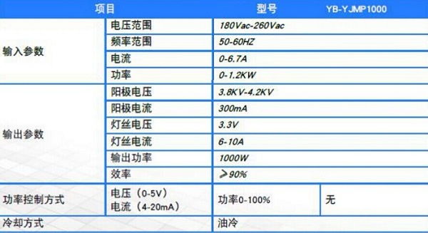 2.产品特点 (1)采用新型开关电源技术,结构简单,性能稳定,效率高,纹波小 (2)足功率,效率高,相比其他电源更为节能 (3) 输出功率足,可让磁控管达到最佳工作点 (4) 功率可调,外接0-5V电压信号控制,实现单台及多台电源并机控制,预留有485通讯端口可以直接与远程PLC,上位机通讯。 (5) 可驱动多种磁控管长期工作 (6) 体积小、重量轻,安装简便